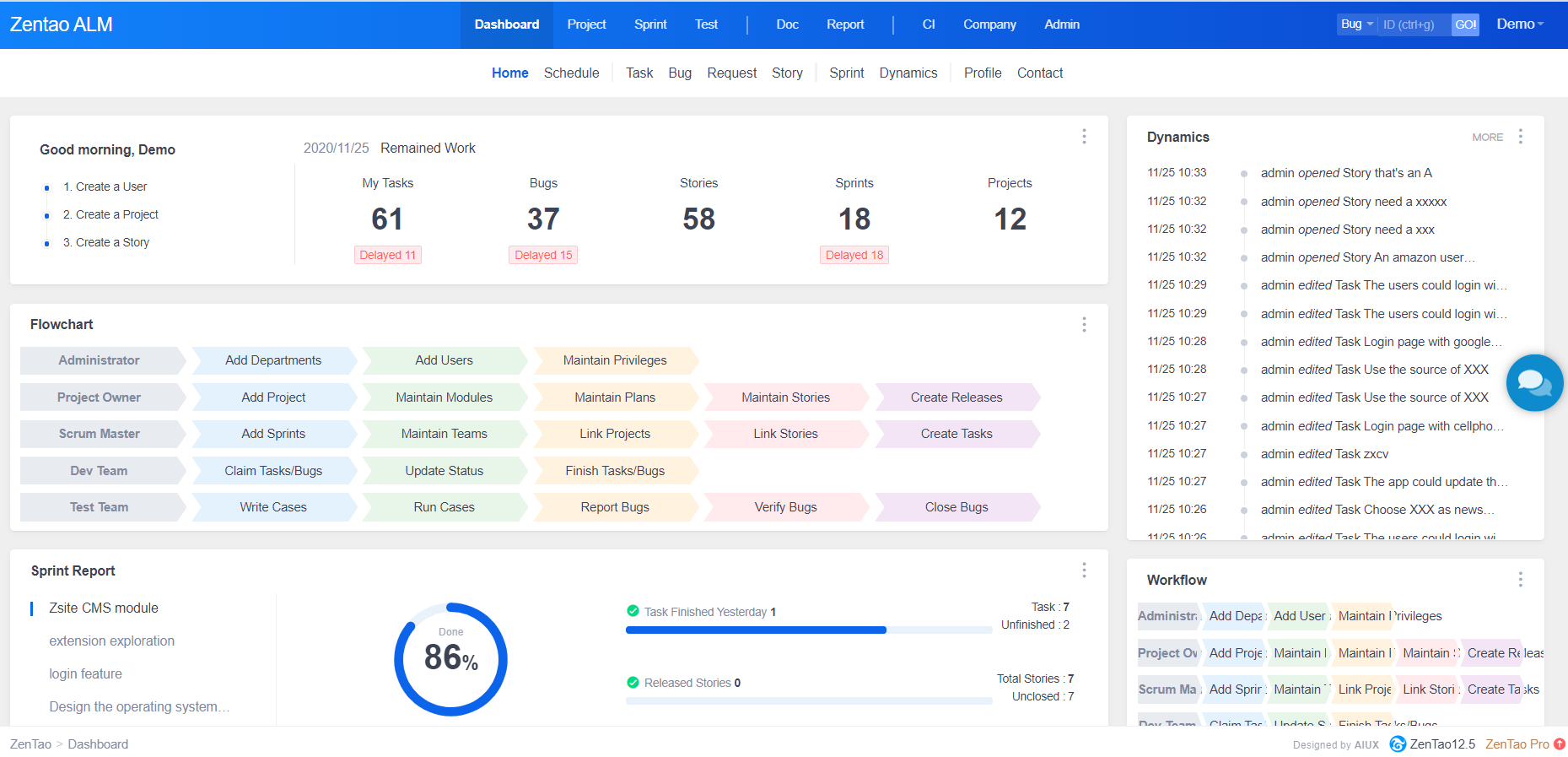 ZenTao Open Source 12.5.stable is released. This release is to fix bugs and to develop stories with top priorities.